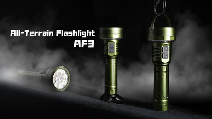 Now, we’re proud to introduce our third project of the year — the AF3, the world’s first all-terrain flashlight. It works as a powerful flashlight, a cozy camping lantern, and even a bedside light — ready for all kinds of environments and adventures.