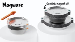 Magnetically connecting bowls, plates and flatware sets that keep you super organized.