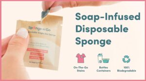 Sponge n’ Go® is an instant, disposable fix for clothes stains, dirty gym bottles, smelly containers & shared office sponges!