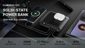 285W Flash-Charge Multiple Laptops & Phones · 25500mAh / 98Wh Flight-Friendly · Safer Solid-State Tech · Splashproof & Drop-resistant