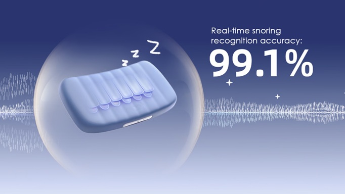 Intelligently monitors and gently corrects snoring without disturbing your sleep.